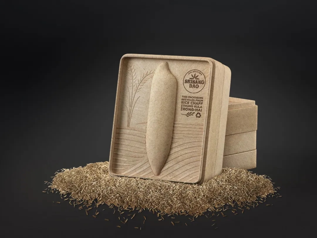整个盒子用大米脱壳过程中产生的自然废弃物稻壳来压制